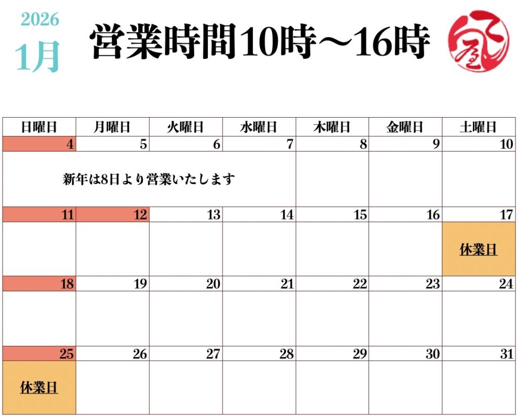 ところてん・あんみつ調製処 2025.02.212026.01.07 早期のお知らせ・お得情報はX(旧Twitter)をご覧ください https://twitter.com/tenyatwi 【1月 営業日のお知らせ】